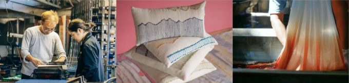 デザイナーと職人の協働により一枚の布が出来上がる。デザイナーは、職人たちから専門的な知識や技術を学び、対話を重ねながら、技術や生地の可能性を拡張させる。