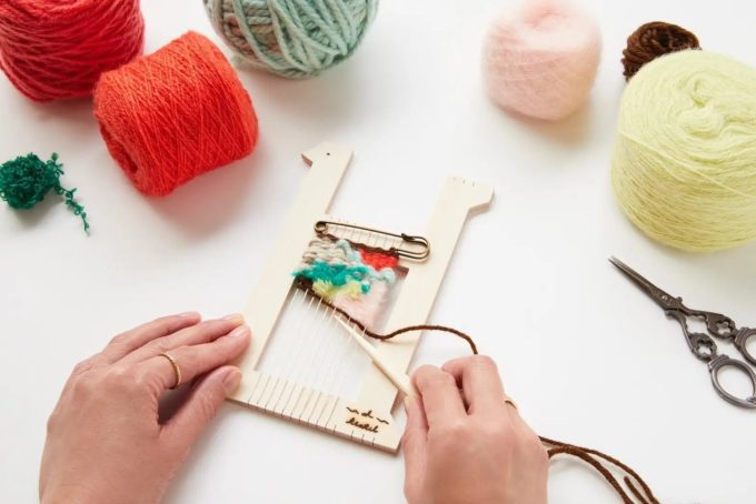 鳥のカタチのミニ織り機oritoriを使って手織りのブローチをつくるワークショップ。たくさんのカラフルな糸を好きなだけ使ってオリジナルテキスタイルを作ります。老若男女楽しめるのでテキスタイルに興味がある方は年齢問わずどなたにもおすすめです。