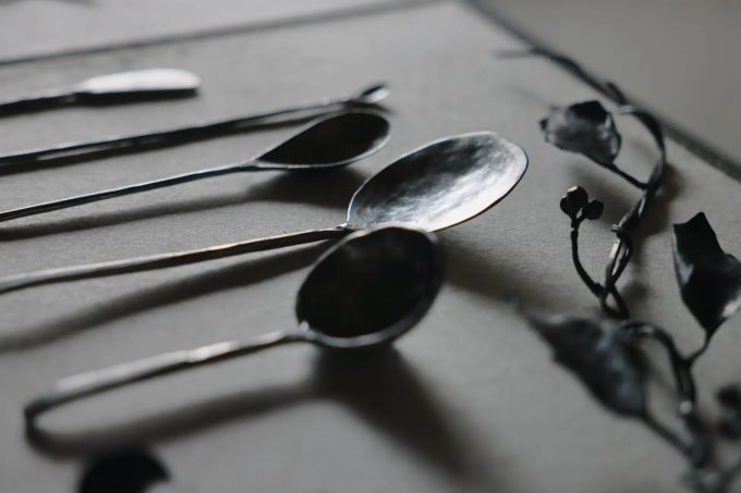 鍛鉄の植物のオブジェの他、花器、カトラリー、装身具などを展示販売いたします。