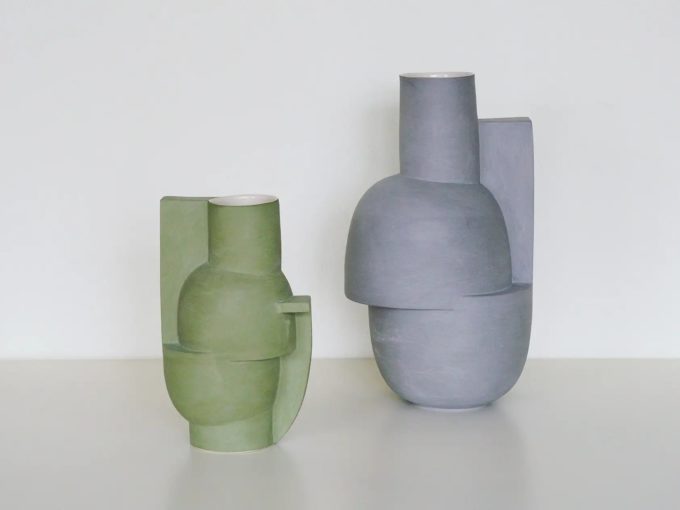 Derek Wilsonのセラミック作品は、イギリスの構成主義などからインスピレーションを得た幾何学的なフォルムに、マットな釉薬と穏やかな色合いが特徴です。複雑で抽象的な造形は、自身のスタジオでろくろを使った手仕事から生み出されます。熟練のクラフトマンシップとミニマルな美学から生み出されるコンセプチュアルなオブジェは、空間の中で静かに佇みながらも、光の経過とともに様々な表情を見せます。