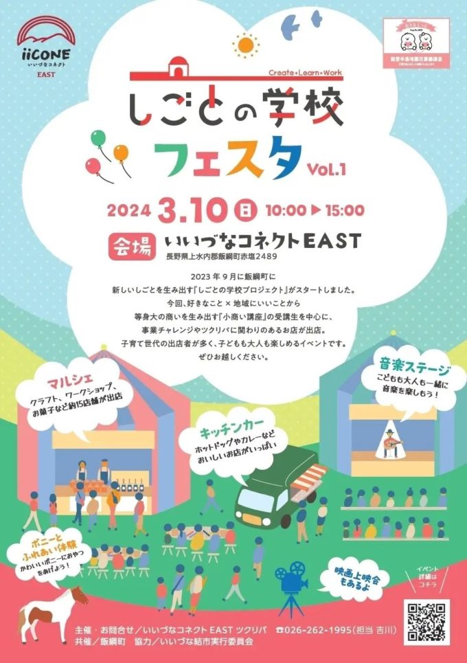 飯綱町では、地域の活性化を目指し、より良い未来に向けて自ら行動できる人を増やすため、2016年から、子どもから大人までが参加できる学びの講座「いいづなフューチャースクール」を実施してきました。2023年には、廃校活用施設「いいづなコネクトEAST」を拠点に、新しいしごとを創る「しごとの学校プロジェクト」をスタートさせました。
