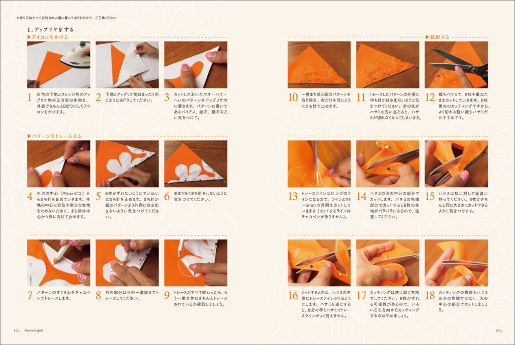 本書はハワイアンキルトの歴史や伝統の柄、由来、そして初心者でもわかる基本的な作り方を知ることのできる一冊です。