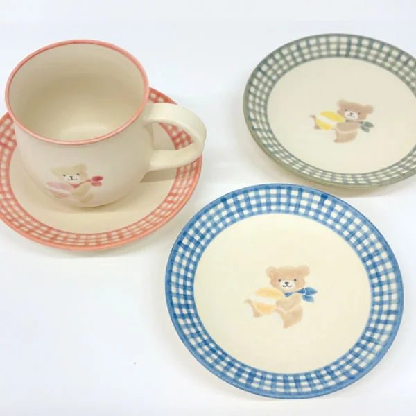京焼・清水焼の技術による手描きの絵付けに柔らかな白いマット釉薬でかわいく温かく、遊び心ある世界観を表現。