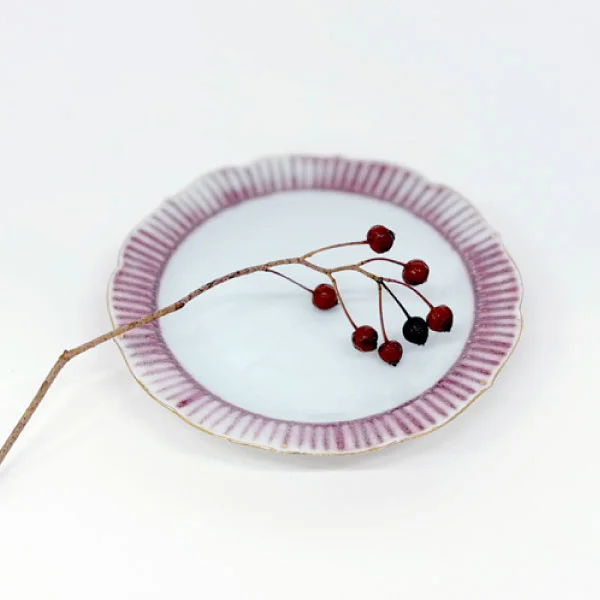 釉裏紅という銅を主原料とした下絵付け技法を用いて、料理を盛る事を考えながら釉裏紅の色合いと素地の色合いを配慮しながら制作しています。