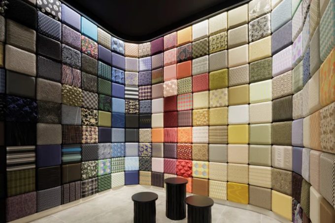 ギャラリー内には、多様な織物・染物による空間「生地の森」もございます。