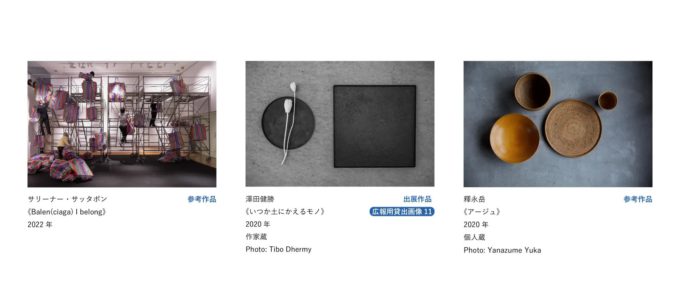 【 アーティスト 】赤木明登×大谷桃子、石渡結、磯谷博史、伊能一三、岩崎努、岩村遠、柿沼康二、川合優×塚本美樹、サリーナー・サッタポン、澤田健勝、釋永岳、五月女晴佳、竹俣勇壱×鬼木孝一郎、舘鼻則孝、外山和洋、松山智一、三浦史朗+宴 KAI プロジェクト、八木隆裕、安田泰三(五十音順)