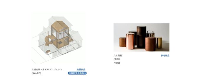 赤木明登(あかぎ あきと)×大谷桃子(おおたに ももこ)、川合優(かわい まさる)×塚本美樹(つかもと よしき)、竹俣勇壱(たけまた ゆういち)×鬼木孝一郎(おにき こういちろう)、三浦史朗(みうら しろう)+宴 KAI プロジェクト(えんかい ぷろじぇくと)*、八木隆裕(やぎ たかひろ)
