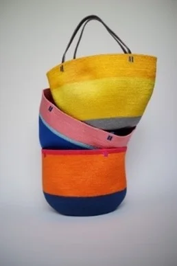 Silkとcottonを縫い合わせ作るカゴバッグ。鳥の巣をインスピレーションとするつくりかたで制作。長野県松本市在住。東京都両国生まれ。