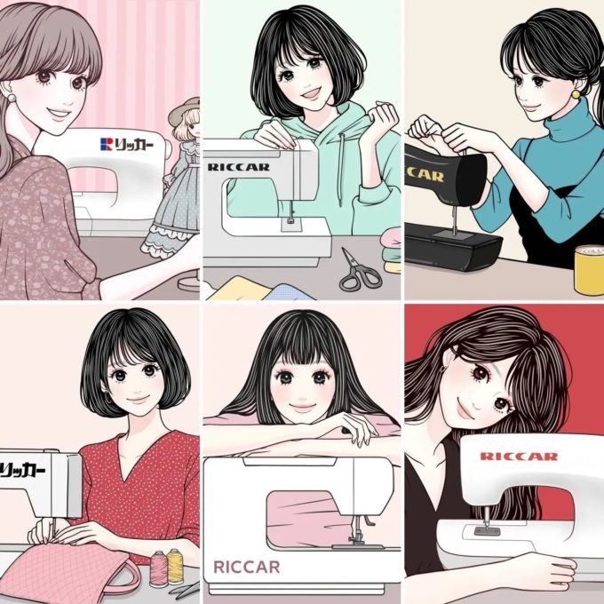 当社は、人気イラストレーターのソウノナホさんを起用し、リッカーミシンのPR活動を展開することで、より多くの方々にリッカーミシンを知っていただくことを目指しています。SNSなどで人気のイラストレーター「ソウノナホ」さんが描く魅力的なヒロインたちがリッカーミシンを愛用してソーイングしているイラストを活用し、認知度の向上を図ります。