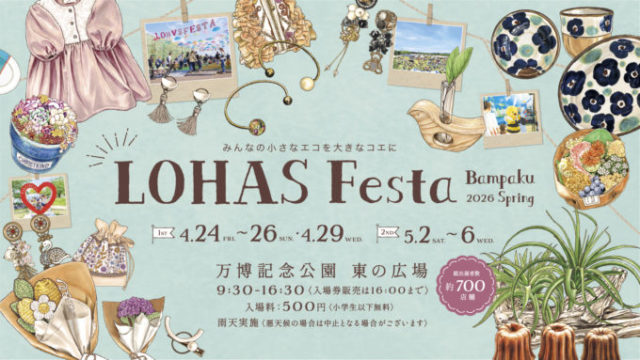 イベント 万博記念公園でエコを体感!「ロハスフェスタ万博2026春」がGWに開催決定 20周年という節目を迎える「ロハスフェスタ万博2026春」が、大阪の万博記念公園で開催されます。「みんなの小さなエコを大きなコエに」を合言葉に、ハンドメイド雑貨や体にやさしいグルメなど、総出展700店舗が集結。春の陽気を感じながら、地球にやさしいライフスタイルを楽しめる9日間です。 2026.04.06 イベント手仕事市-クラフト市