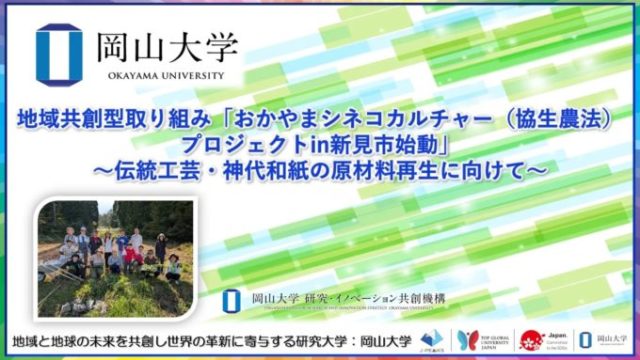 手仕事NEWS 【岡山大学】地域共創型取り組み「おかやまシネコカルチャー(協生農法)プロジェクトin新見市始動」~伝統工芸・神代和紙の原材料再生に向けて~ 2025年10月12日に岡山県新見市で「シネコカルチャープロジェクト in 新見」を実施しました。 2025.10.23 手仕事NEWS
