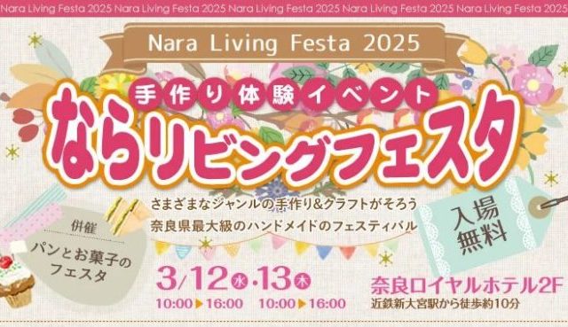 手仕事NEWS 心ときめく♡奈良県最大級のハンドメイド&手作り体験イベントの祭典「ならリビングフェスタ2025」を奈良ロイヤルホテルで開催。ならリビング創刊50周年記念で、さらに楽しくパワーアップした内容に! 開催は3月12・13日。手作り&手芸材料がおトクに手に入り、作家作のキットや完成品も購入可能。手作り好きの方には見逃せない2日間です! 2025.03.11 手仕事NEWS手仕事市-クラフト市