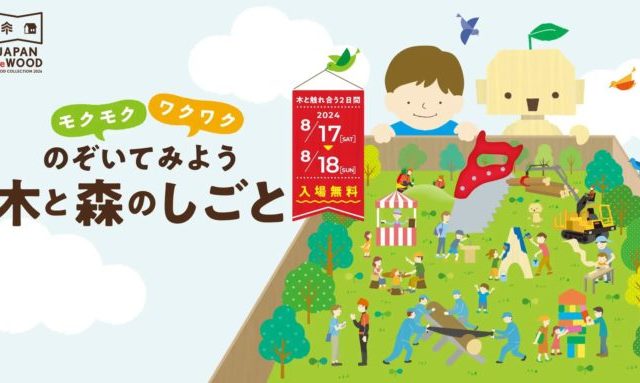 ワークショップ 国産木材の祭典!自由研究にも役立つ展示・ワークショップなど満載WOODコレクション2024「JAPAN ReWOOD」 【開催期間】2024年8月17日(土)~18日(日) 2024.08.02 ワークショップ手仕事NEWS